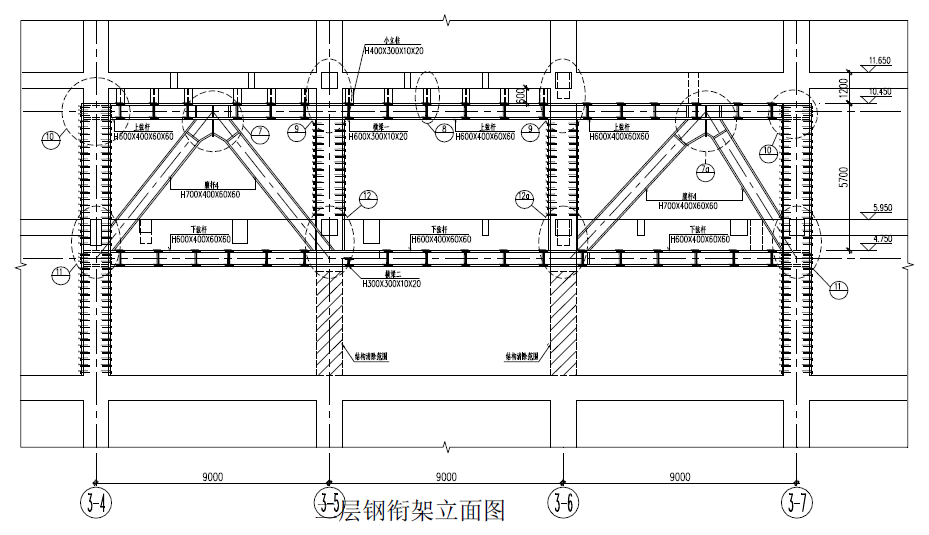 拆除柱平面圖及二層鋼桁架立面圖