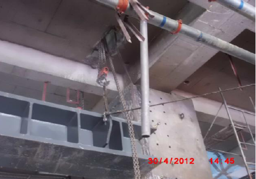 4、拔柱過程中,爲解決截柱後瞬間的應力釋放(fàng)過大的問題,我們采用靜力切割配合鑿除、保留部分主筋的方法,然後逐根截斷主筋來達到應力逐步釋放(fàng)的目的。