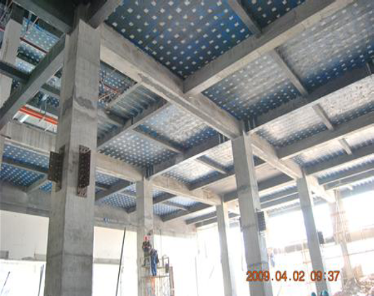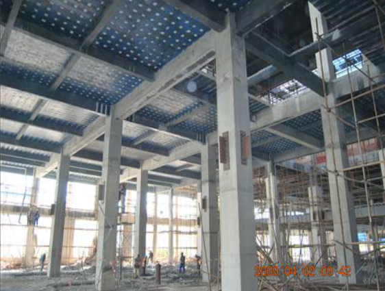 全部采用滿堂腳手架,搭設高度8.5m,粘貼碳纖維面積6000㎡。